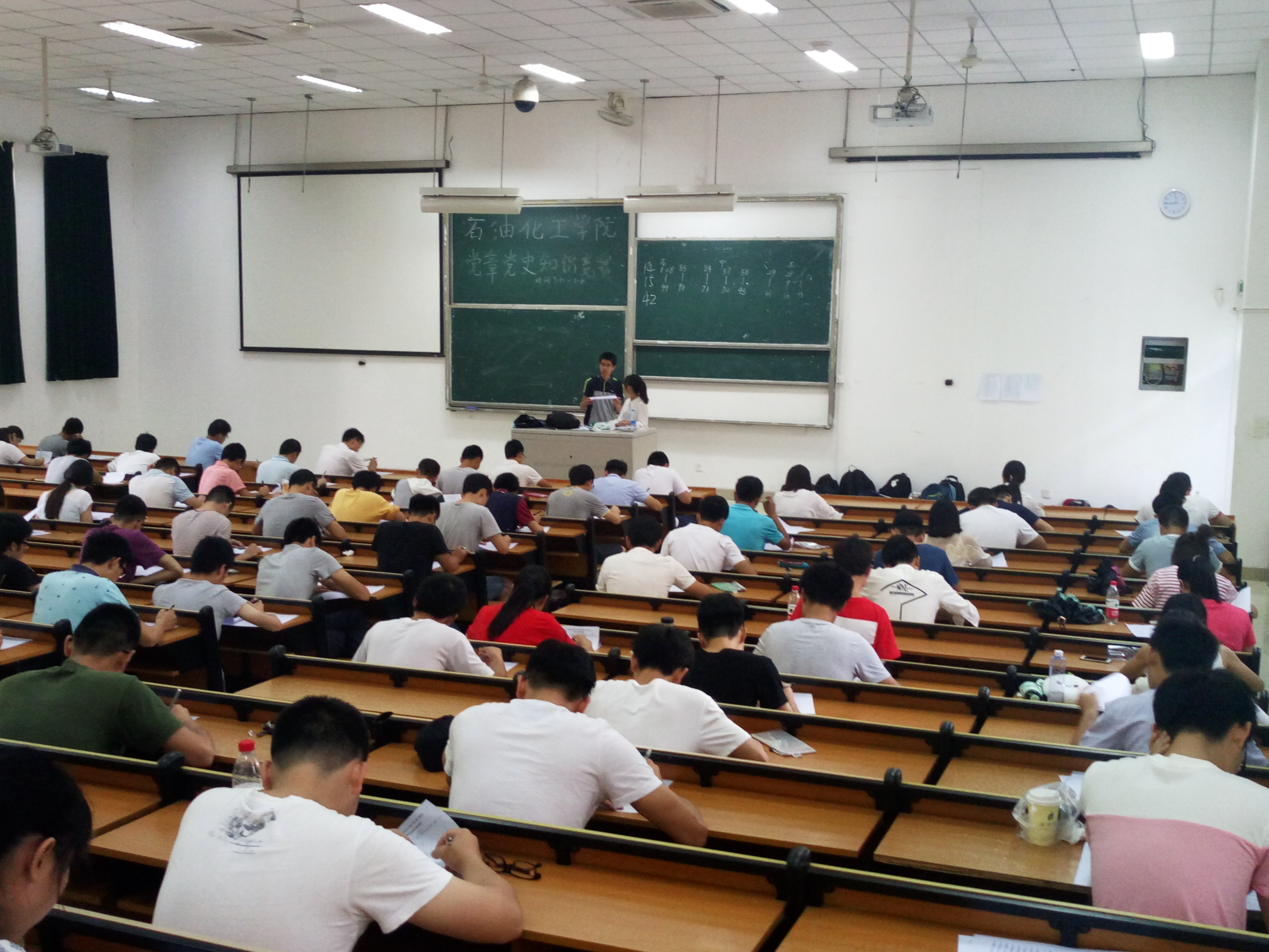 举办“两学一做”活动之党章党史知识竞赛。各党支部党员一百余人在文三-101开展党章知识竞赛考试。