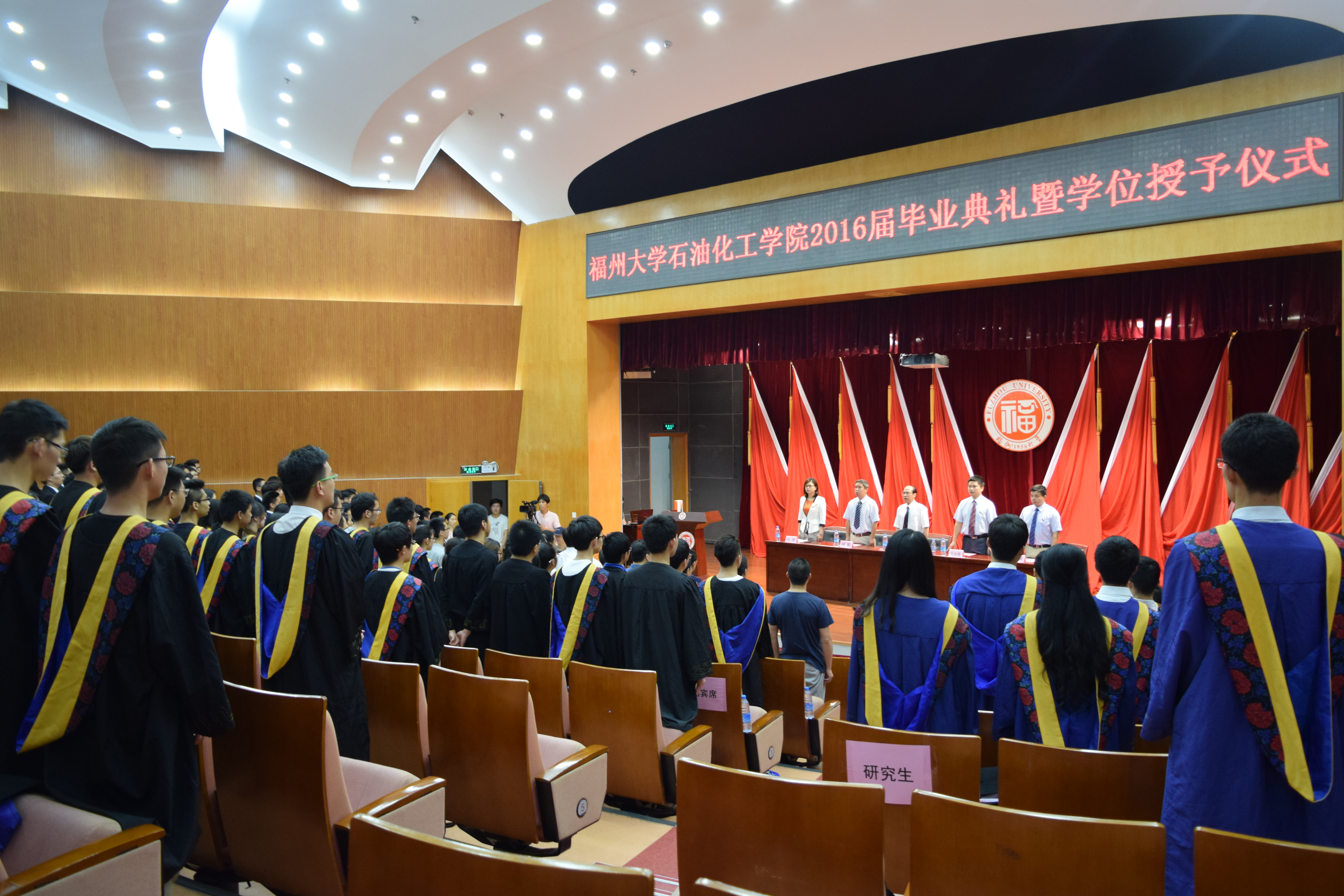 伴随着庄严的国歌,毕业典礼正式开始。首先,侯琳熙教授宣读2016届优秀毕业生、毕业生先进集体和先进个人名单。随后,院领导为其颁发荣誉证书。优秀博士生代表蔡永清同学、优秀本科生代表林薇同学分别上台发言,回顾大学经历,展望未来,号召石化学子深深思索未来,砥砺前行,自强不息,以优秀的业绩彰显石化的风采。
