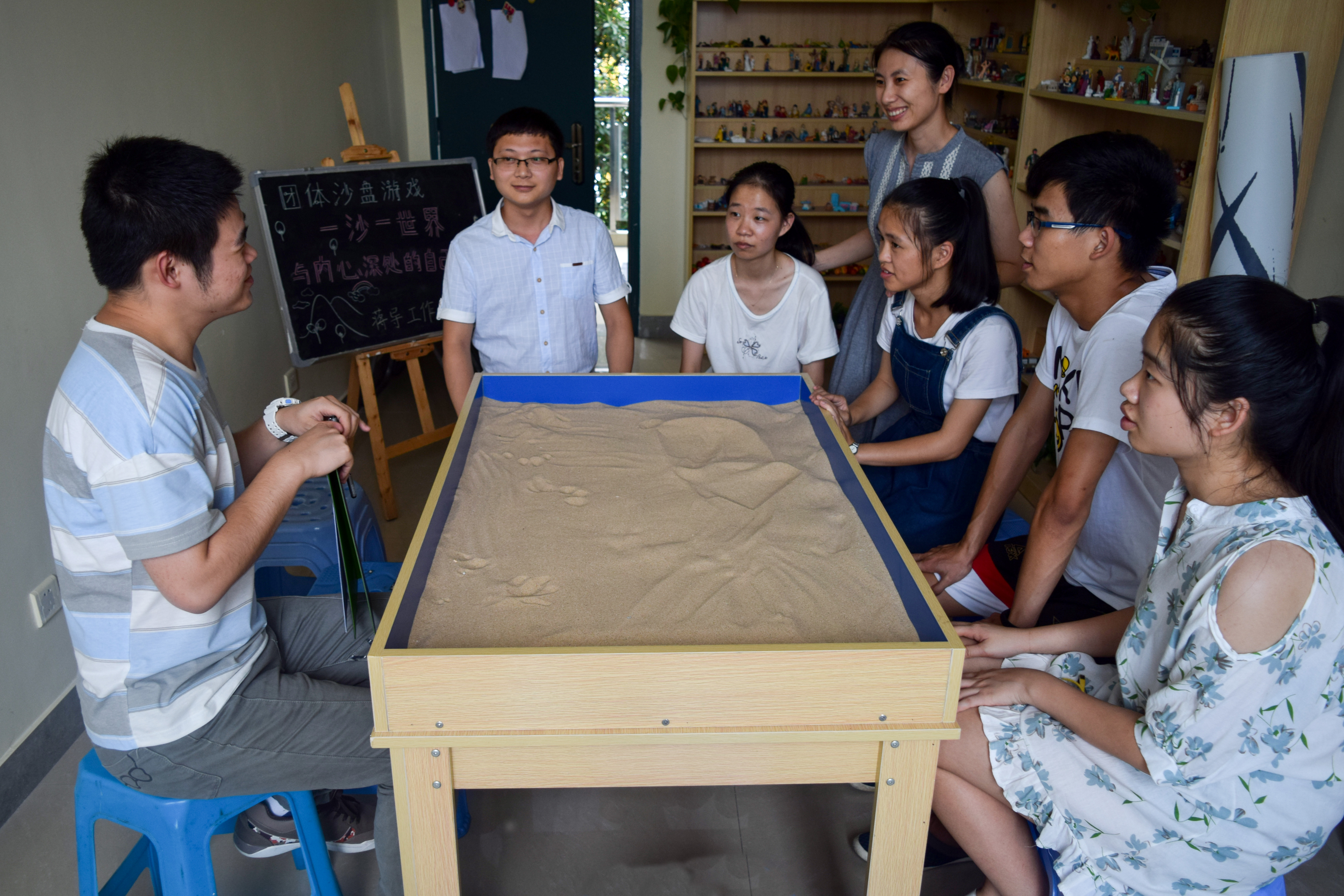 于素拓沙盘室开展蒋导工作室第十一期活动之“一沙一世界,与内心深处的自己相遇”的沙盘体验活动。活动邀请高级沙盘老师尹老师引导学生体验, 苏畅