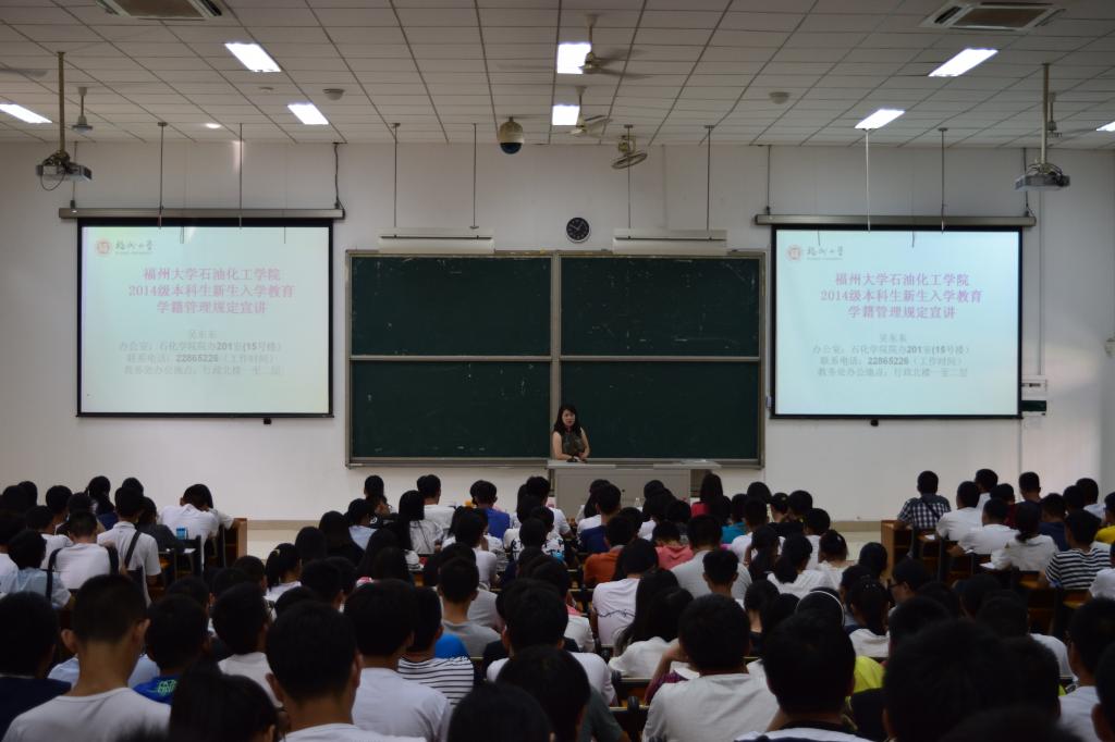 在新生入学教育周里组织新生学习《学生手册》,会议分别在东2-100和文4-101举行。石油 苏畅