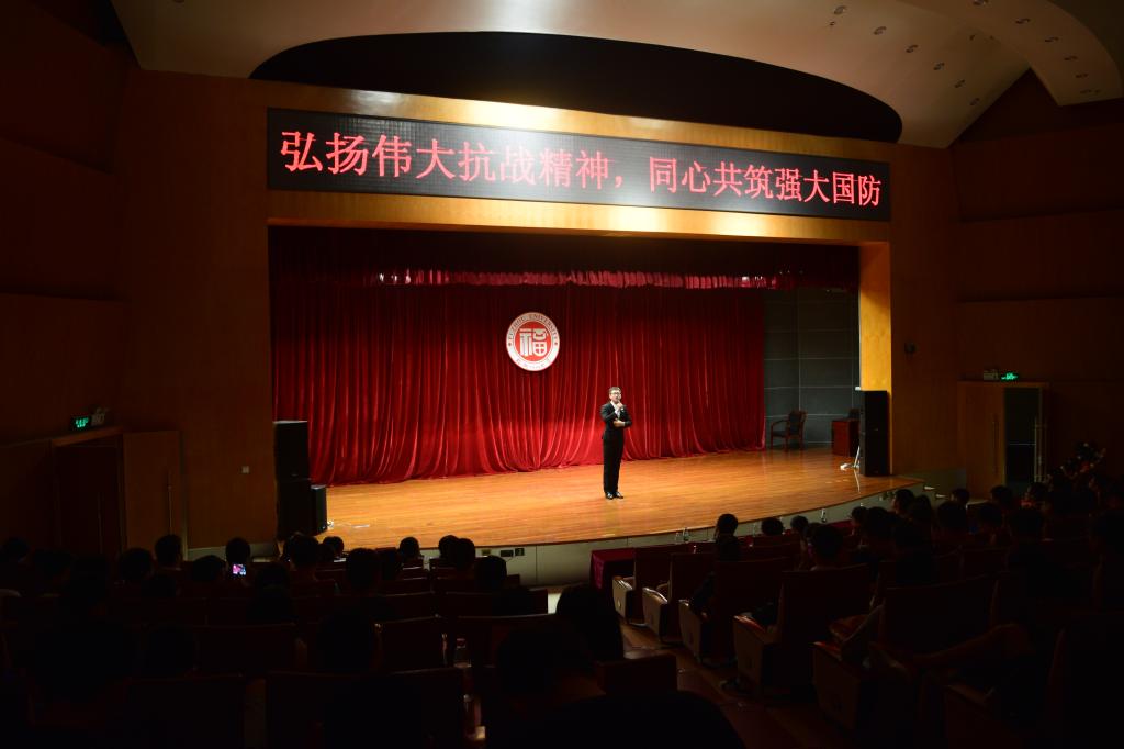 舞台上,各位选手以流利的语言和富有感情的词汇为我们讲述祖国抗战历程及先驱们留给后辈的抗战精神。他们以或高亢或低沉的嗓音极具感情地在舞台上抒发对英雄的崇敬和对增强祖国国防力量的期盼和信任。
