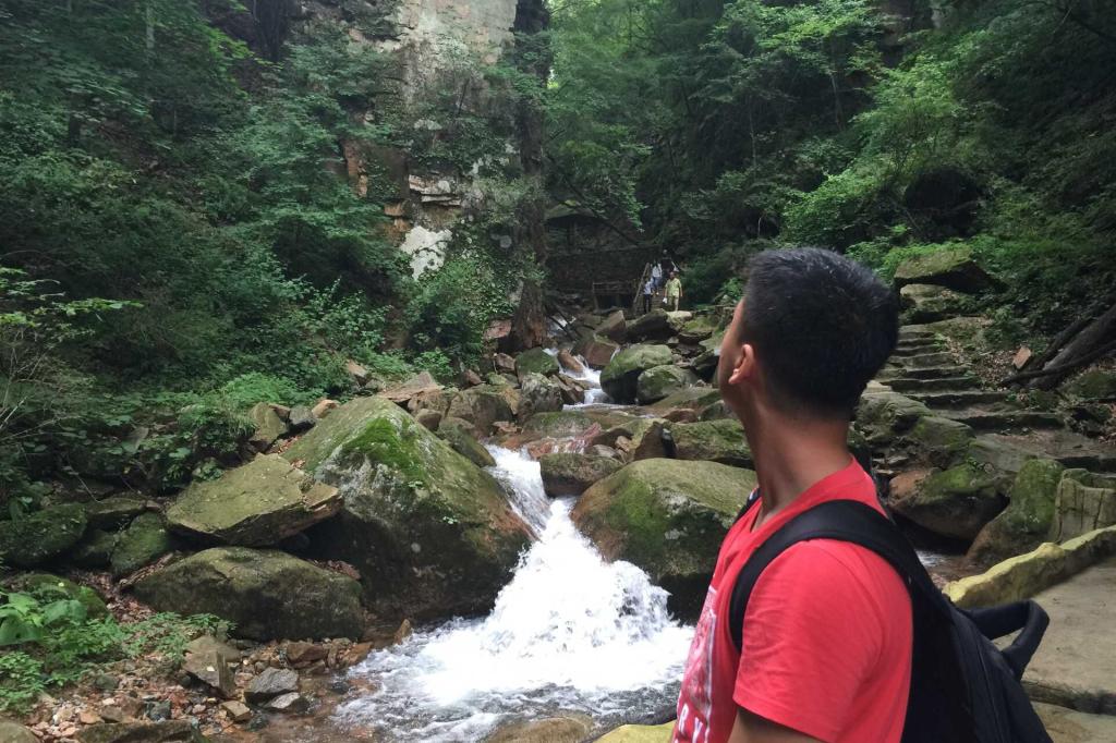 经过一个多小时的车程,考察队员们来到了五女峰的进山门处,接下来的旅途都需要队员步行。队员们在景点的介绍牌前驻足阅读,了解五女峰背后所蕴藏的历史渊源,而后勇攀高峰。在攀峰的过程中,还拾起游客扔掉的垃圾,以保护景区环境。站在仙人台上,队员们都有一种“会当临绝顶,一览众山小”的豪情。
