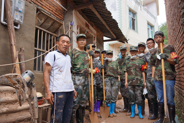 7月27日上午八点半,全体志愿者集合完毕,姑田镇统战委员童礼滨集中强调了安全救灾的重要性,并要求我们继续艰苦奋斗、再接再厉。会后志愿者们立即前往天马村继续开展灾后重建工作。志愿者分为两队,分别前往两处灾民家中。其中一队帮助孤寡老人继续清除废墟、打扫房屋、整理物品;另一队帮助五保户独居老人清理农田、搬运损毁家具、清除家中淤泥,并安抚老人情绪。同时,志愿者们在工作过程中还积极鼓励受灾群众树立重建家园的勇气和信心。