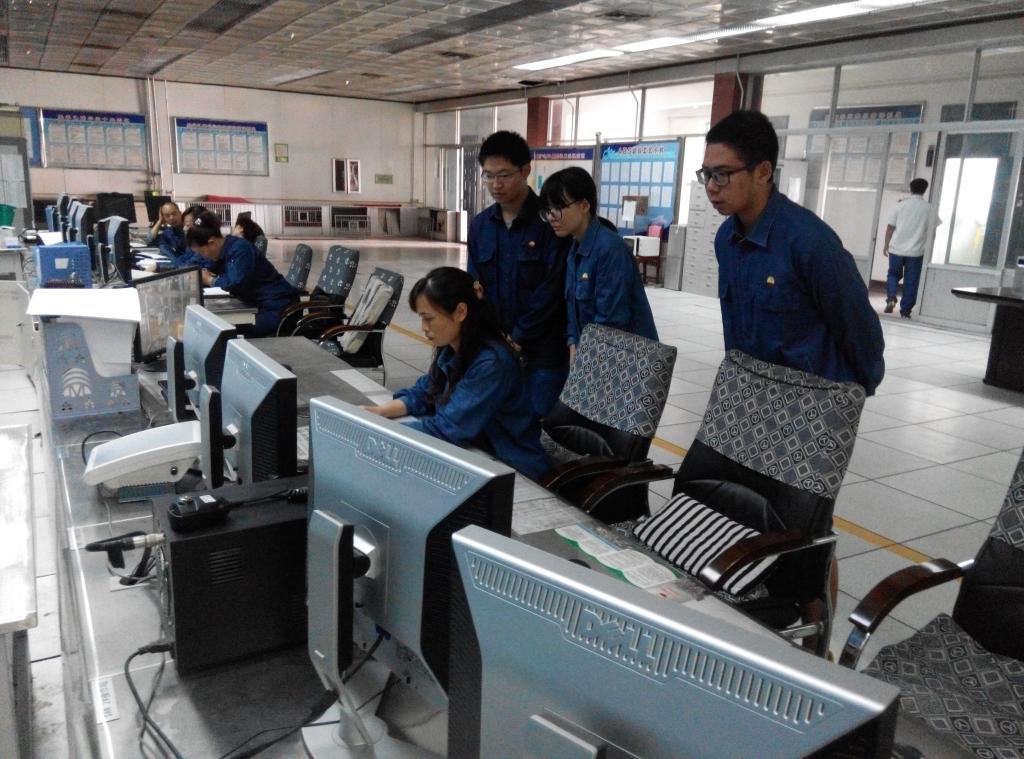 王平,化工三厂ABS车间主任,也是在他的带领下我们逐步的了解了这个车间。在进入之前,我们披上了工作服装,心中也是略微的激动。在师傅的带领下,我们陆续参观了各种设备和仪器,有一些甚至进行了操作。最后,师傅带我们进入了中央控制室,并在一位经验丰富的工人阿姨的操作台上进行了参观学习并合影留念。在这次的考察中,实践队不仅当了一回化工工人,也体验了本专业未来的工作环境,切实的把理论知识和实践过程相结合。