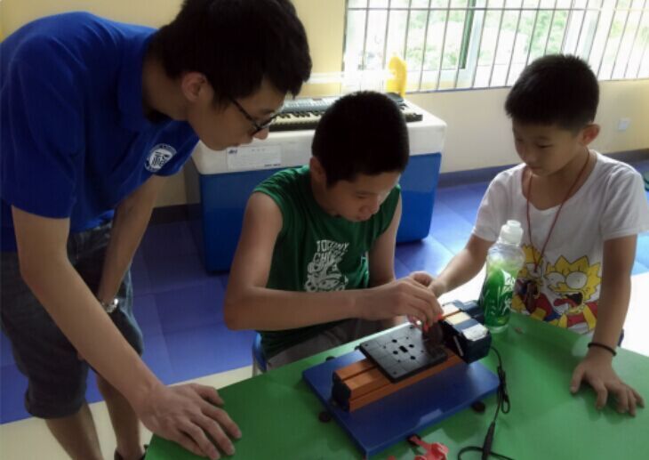 首先,志愿者们在工作室负责人陈阿姨的带领下,充分利用工科学生的基本知识帮助修理损坏的零件和工具,真正地将自己学习到的理论知识运用到实践中去,进一步强化巩固了课堂上的知识。之后,在志愿者们的组织下,社区青少年逐个进行自我介绍,志愿者们再根据每个项目的不同原理进行讲解并且亲自示范,教习社区的孩子如何完成,让小编印象最深的是,一位小朋友比较内向,不敢动手完成任务,志愿者就手把手地教习,并给予其鼓励,最终取得了成功。