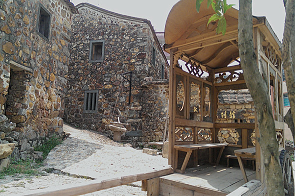 下山时队员径直走入了古民居,走进这一片全是石头垒砌而成的房屋群里,历史的厚重感充盈在空气中。墙上的石卵石块,都是铁红色的风化石。砌屋时依山就势,上下左右都不讲究布局。许多人家一座房子之中,从这个房间到那个房间,还得上几级石阶,窗户少而小,据说是考虑到防盗。同一座房子里,却一定要在前房后房之间留一道哪怕只是窄窄的露天巷道或小天井,为的是有利于通风和采光。卵石砌成的狭窄、幽静的石巷,经过雨水的冲刷,石梁上留下古老的印记。缠在石墙上的老藤,给石屋增添了一份沧桑。历经岁月的洗礼,石墙已是一片斑驳,但其呈现出来的红褐、灰白、藏青的色泽,在阳光的照射下,那么绚丽、缤纷,俨然一幅油彩画。