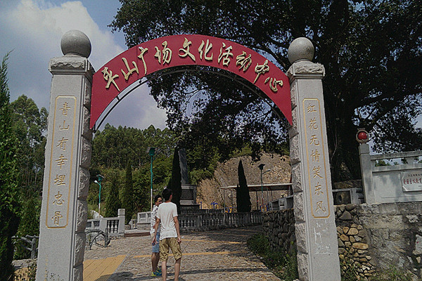 7月21日早上下起了大雨,把队员们上山的计划耽搁了,雨变小后队员徒步上山,步行大约半个小时来到村子里最大的樟树下。村里人说,这株700多年的大樟树,人爬到树上俯瞰,村子如在脚下一般,樟脚村因此得名。陈平山同志的纪念碑也在这个小广场之中。每当夏日的黄昏,村民们在树下乘凉、或是议论家国大事、或是聊聊家长里短、或是跳起广场舞。