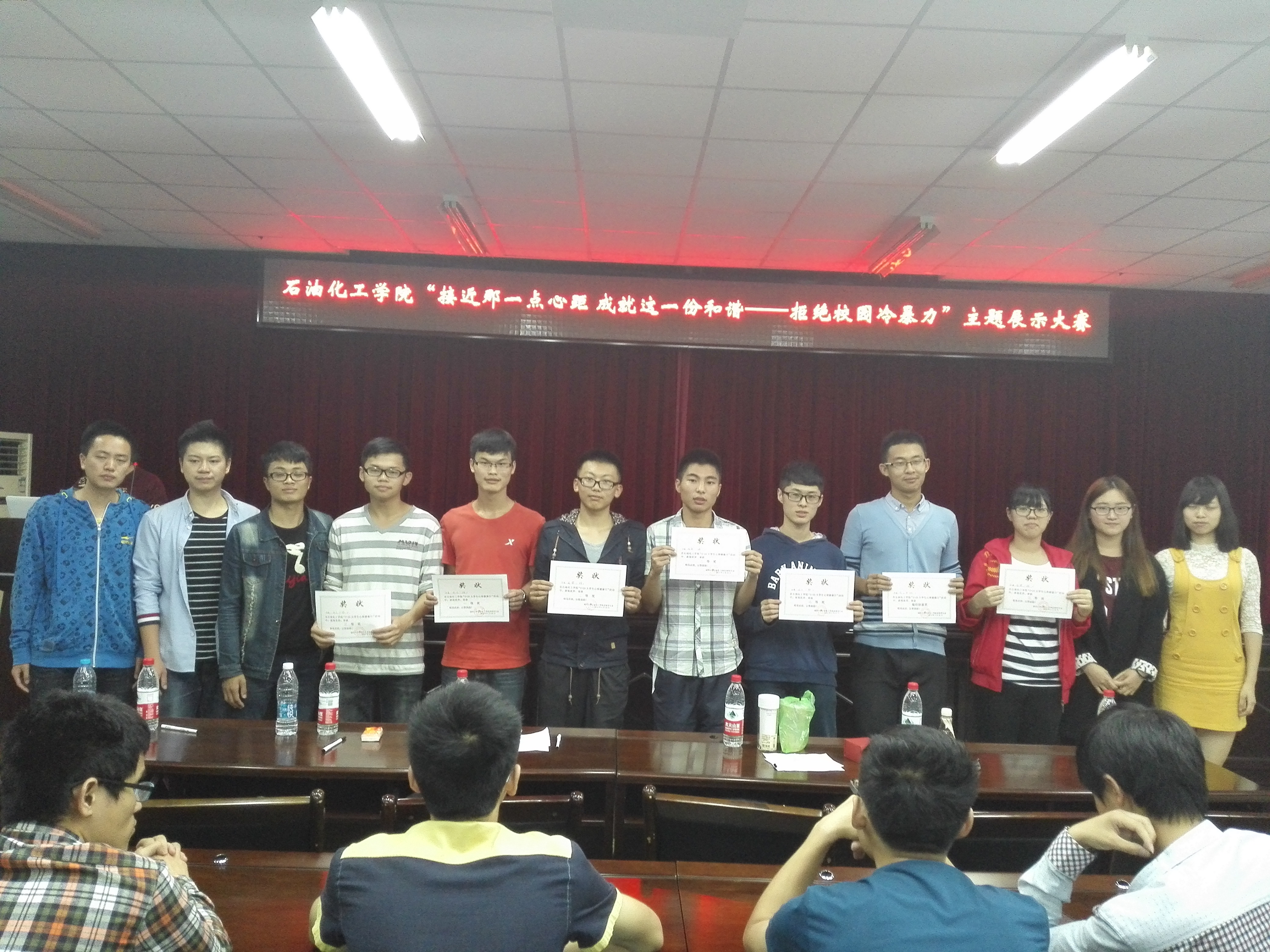 演讲结束后,主席李炜上台为各位主讲人做出评价,认真分析各个班级的不足之处。随后,在颁奖仪式结束后,石油 苏畅