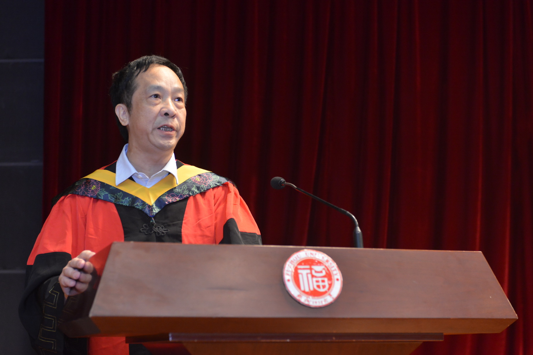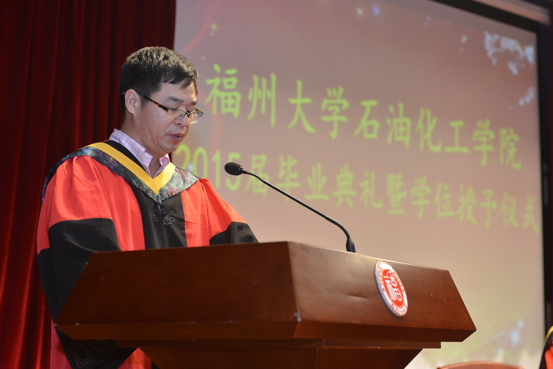 随后,鲍晓军教授发表讲话,对每一位毕业生表示了祝贺也提出了殷切期望和要求,希望全体同学牢记院长和老师们的期望和嘱托,力行求是,开拓创新,今天你们以福大为荣,明天福大将以你们为荣。