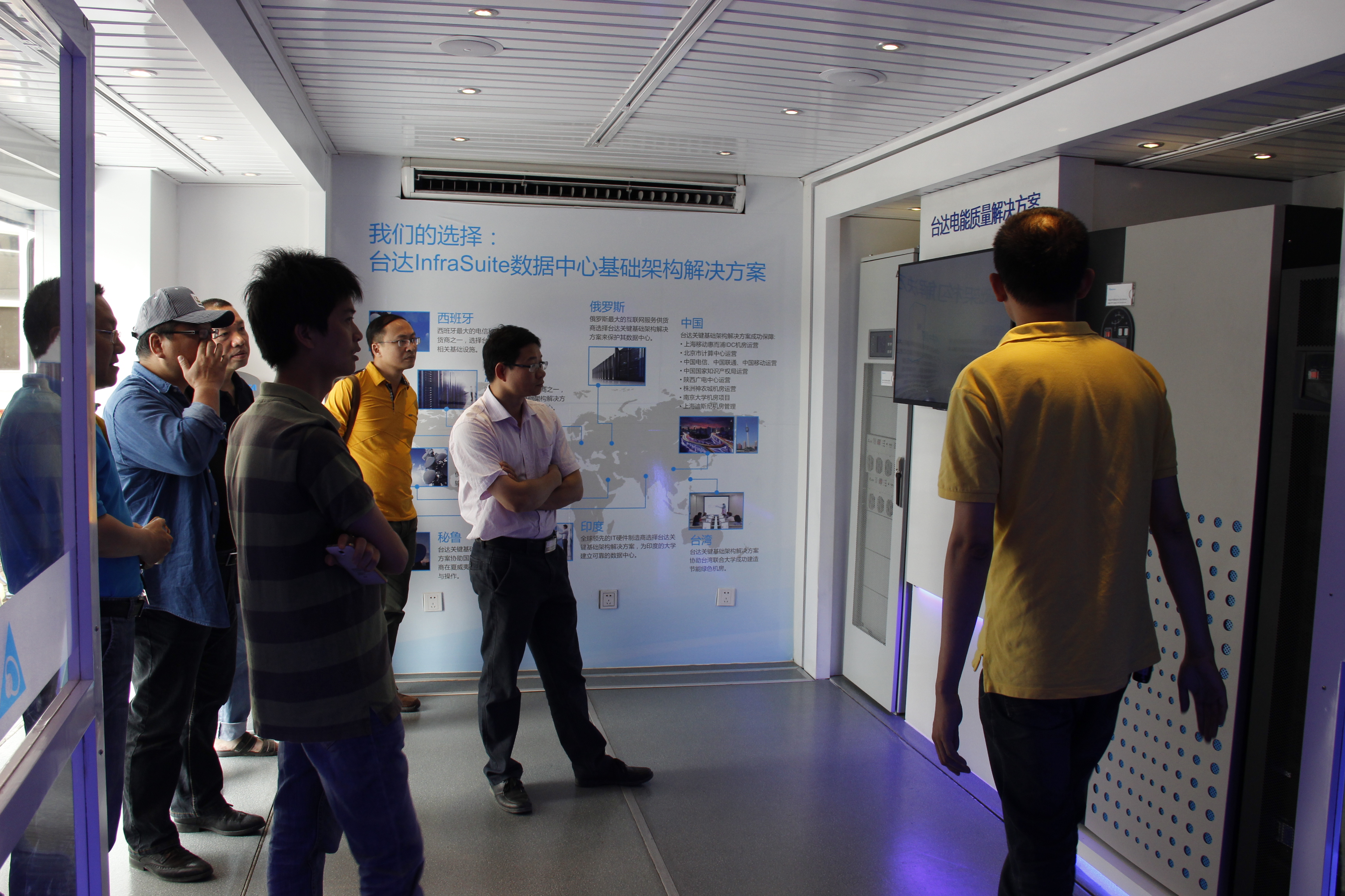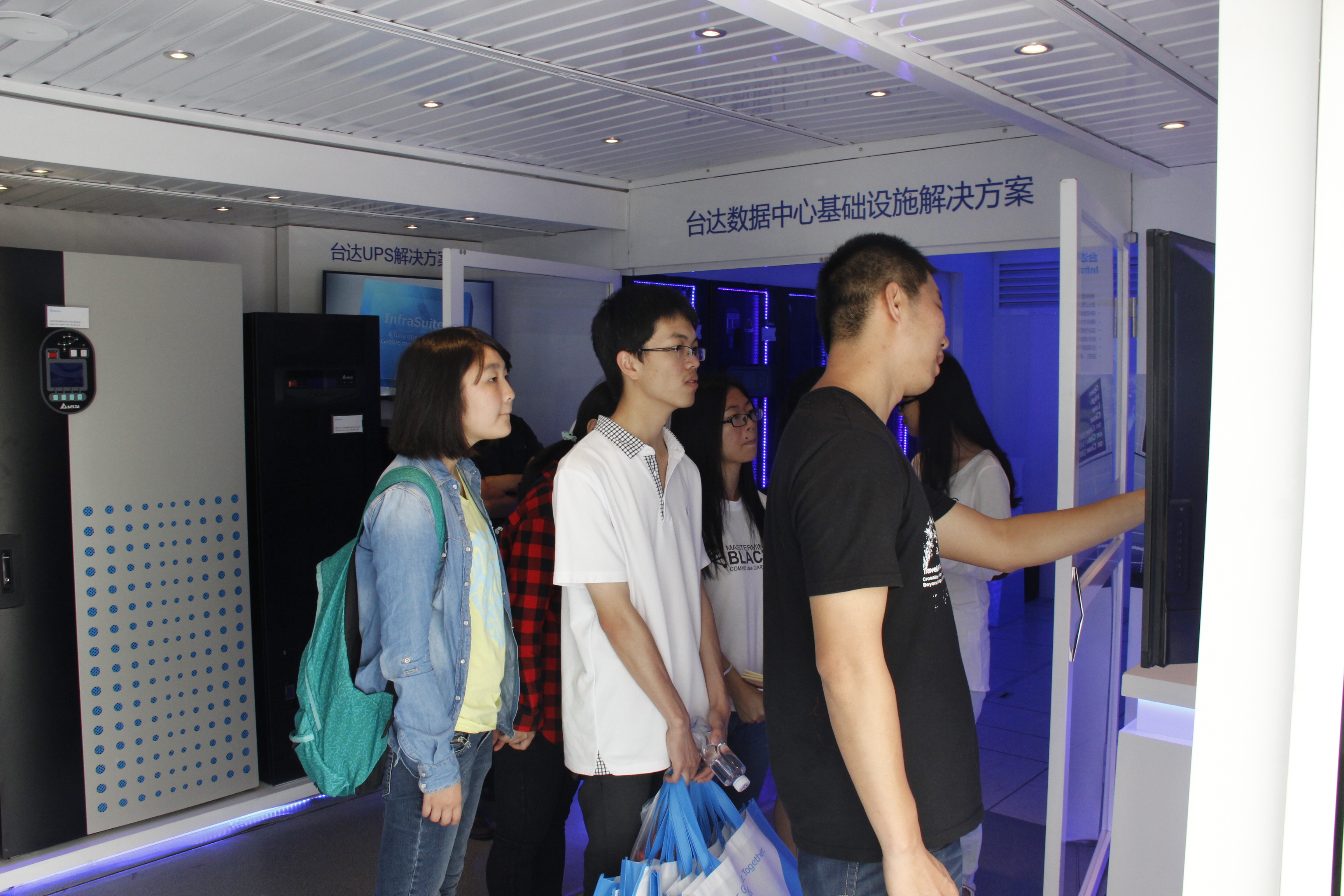 在这次展会上,台达展示的InfraSuite数据中心解决方案提供了包括模块化UPS系统、制冷系统、机柜系统、监控系统、PDC、配电柜、PDU等全套机房产品。方案中亮点诸多,如:先进的水平送风空调系统及冷池系统,通过更合理的气流组织设计很好地满足了高校对高密度、高性能数据机房应用的需求,对降低能源开支效果明显;采用模块化UPS系统和机柜上走线系统,更加可靠灵活,也便于满足学校规模扩大后对后期扩容的要求;。展览期间,每个展台前都有工作人员为大家做讲解,经过耐心地讲解后,同学们对数据中心解决方案有了更深的了解。很多同学参观完台达数据中心解决方案后,就电源,制冷等问题与台达技术专家热切交流。