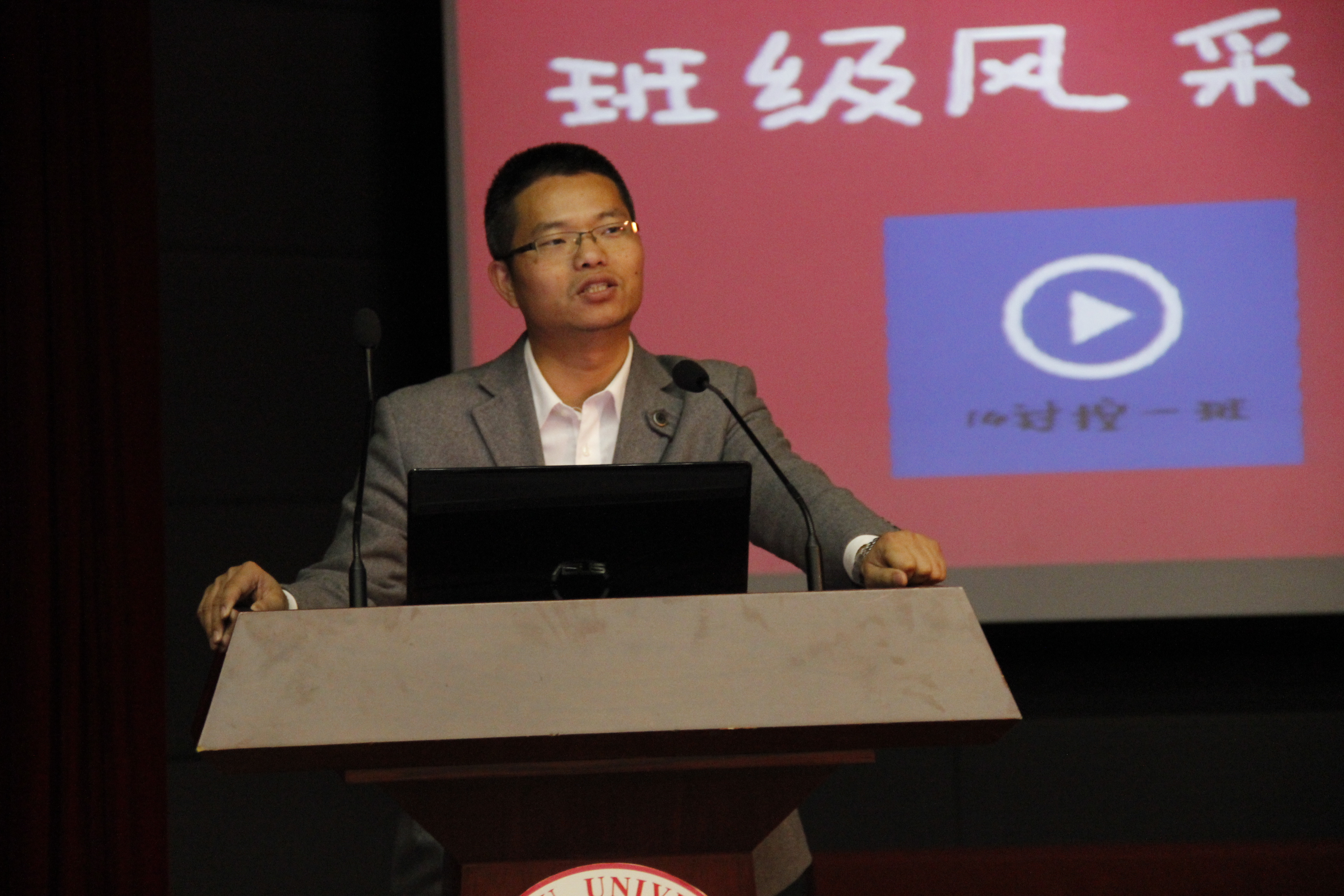 展示结束后,学生处教育管理科科长岳志强老师上台发言。他分享了观看本次风采展的感受,对各班的认真准备与精心策划表示肯定,尤其赞扬了同学们展现出来的青春活力,同时也希望大家可以珍惜校园时光,多多锻炼自己,加强分享交流,将更多的班级文化特色展现给大家。