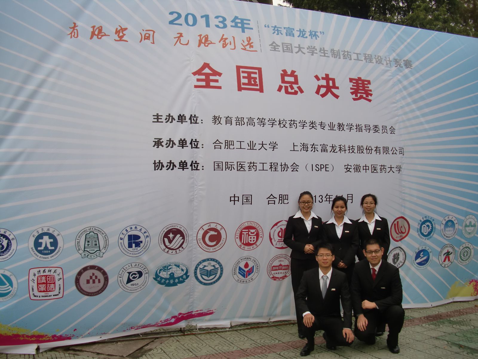 陈宪老师的带领下前赴安徽省合肥工业大学参加第三届“东富龙”杯全国大学生制药工程设计竞赛决赛答辩,取得了决赛一等奖的佳绩,并收获“优秀指导教师奖”的骄人成绩。