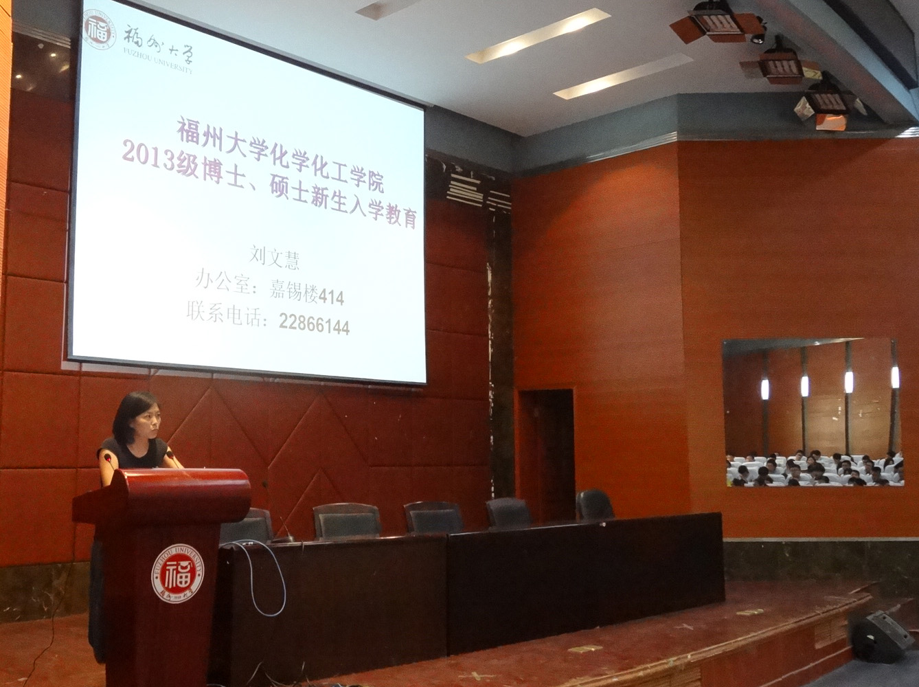 2013级研究生新生入学教育讲座在嘉锡楼报告厅顺利召开。本次讲座由研究生教学干事刘文慧老师及2013级研究生辅导员黄寿泰老师担任主讲,全院250余名研究生参加了本次讲座。