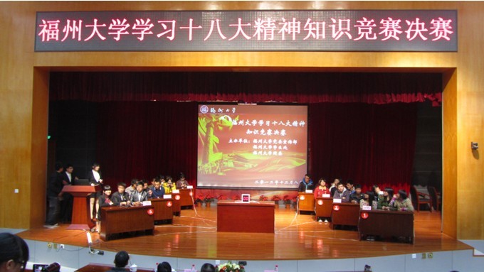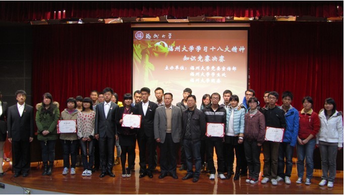 团委学生会联合举办的“学习十八大精神”知识竞赛决赛在图书馆明德厅隆重举行。共有七个学院的代表队参加最后角逐。本次比赛特别邀请校团委书记黄阿火老师、校团委宣传部陈山部长和朝晖副部长担任评委。