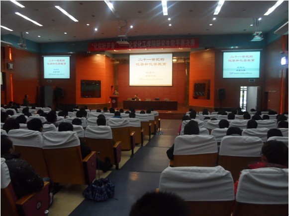 段连运教授的报告主要围绕两个方面展开:“二十一世纪的化学和化学教育”和“本科生科研能力训练”。首先,段教授用朴实的语言向大家一一介绍了化学的一维、二维、三维、四维和多维的定义,让大家对化学这一学科有了更深刻的认识。同时,段教授指出,在当前的“大化学”背景下,高等化学教育的培养模式要多样化,要更加重视理论与实际的紧密结合;在研究方法和研究手段上,要更加注重尺度效应:要更加重视合成化学新方法,追求绿色化学及实验的微型化、超微型化。