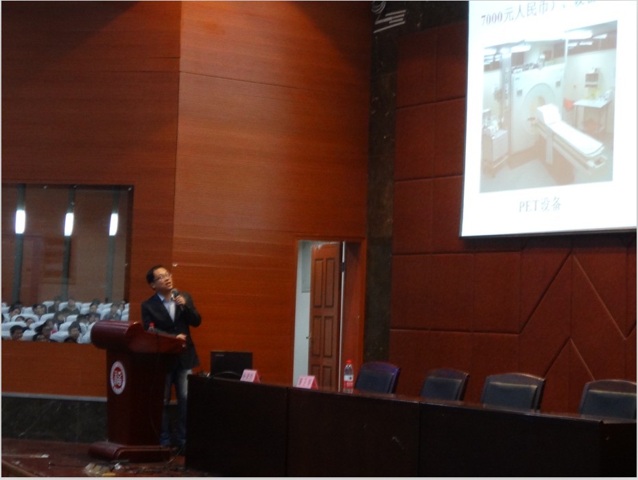 杨黄浩教授以肿瘤的良性与恶性作为切入点,向我们介绍了肿瘤发生的原因、常见的恶性肿瘤、肿瘤的发生与发展等内容,随后他从肿瘤常规诊断和治疗方法引出纳米材料在肿瘤诊断和治疗中的应用。他指出,由于纳米材料的量子尺寸效应、表面与界面效应、宏观量子隧道效应,使其具备光学性能、电学性能、磁学性能和热学性能,能很好地应用于肿瘤诊断及治疗中。之后,他分别从血清学检验和体内成像诊断及治疗两个方面详尽阐述了目前学术上利用纳米材料在这一领域的突出优势,也介绍了自己课题组目前研究的方向和所取得的成果,也提出了纳米材料在肿瘤诊断方面存在的一些潜在问题和不足。最后杨黄浩教授还对纳米材料的前景作了展望。