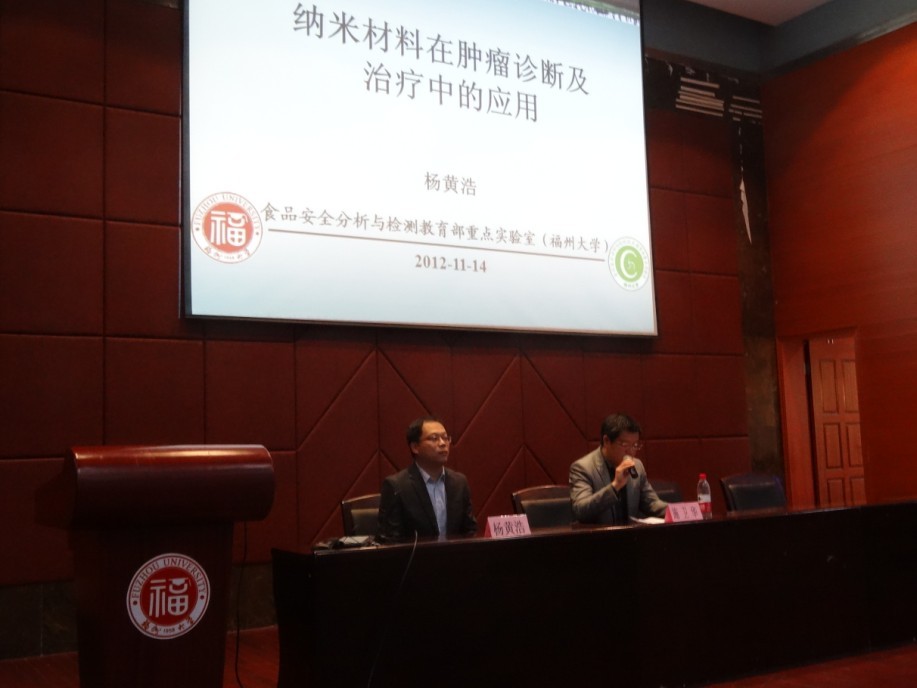 闽江学者特聘教授、博士生导师杨黄浩教授为全校研究生带来了题为“纳米材料在肿瘤诊断及治疗中的应用”的主题报告。本次讲座由化学 苏畅