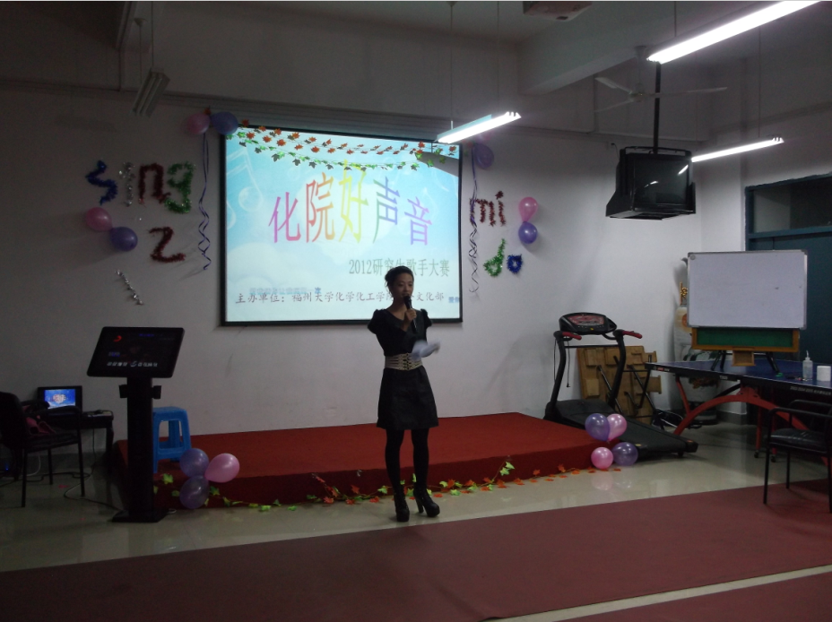 杨洪耀楼“教工之家”装扮一新,色彩亮丽。由化院研会文化部举办的“化院好声音”研究生歌手大赛在此隆重上演。出席此次歌手大赛的评委有来自校歌手队的李啸尘、秀仁花,法学院研会主席黄凯龙以及来自人文学院音乐系的芦彦屹、王坤,嘉宾龙飞雅。化院研会主席李兴淑,副主席张碧琦等各部门部长及干事和参赛选手亲友团也一同前来观看了此次比赛。