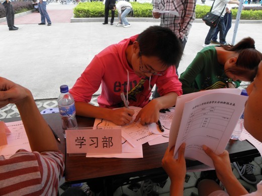 这个科研和教学都很强的学院。我们为这些来自五湖四海的优秀学子准备好了一个展示自己的大舞台——院学生会,一个锻炼自己的最佳场所。纳新现场人群鼎沸,可以看出可以看出2010级的新生参加学生会的积极性很大。各部门部长、以及成员都在纳新现场,积极给新生们介绍部门情况,讲解部门所需要的人才,以及加入这个部门他们有可能得到的收获与成长。这不仅给了新生充分地了解学生会的机会,也让各部部长能够初步了解新生,为接下来面试、录取做好准备。在学生会成员的热情讲解和新生们积极的参与下,本次纳新宣传活动圆满结束。