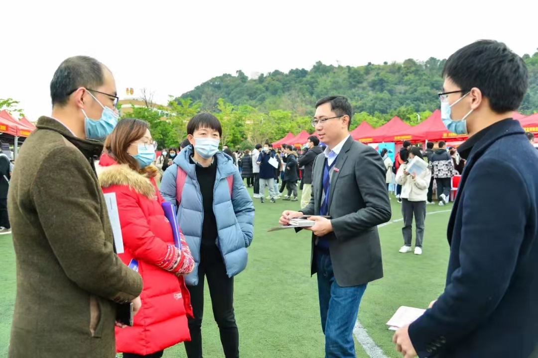 2022届毕业生冬季校园双选会在旗山校区举行,本次双选会共吸引来自全国的213家用人单位参会,包括中化、京东方、天马微等央企国企事业单位和比亚迪、福耀玻璃等中国500强,提供岗位23388个,招聘专业涵盖学校所有学科门类和专业。福建省教育厅副厅长李迅、福建省大中专毕业生就业工作中心主任黄海莺、 苏畅
