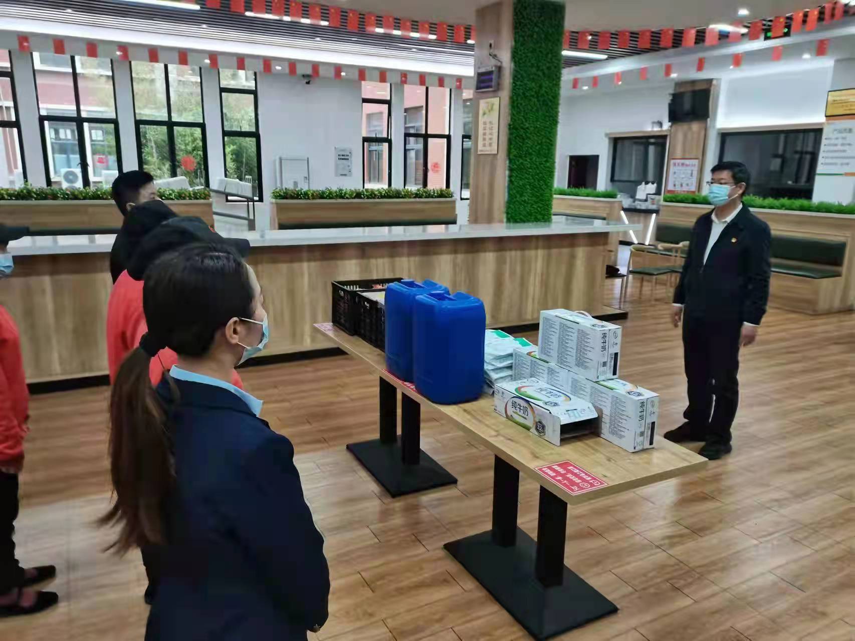 院党委施卫华书记代表学院向校区一线工作人员发放物资