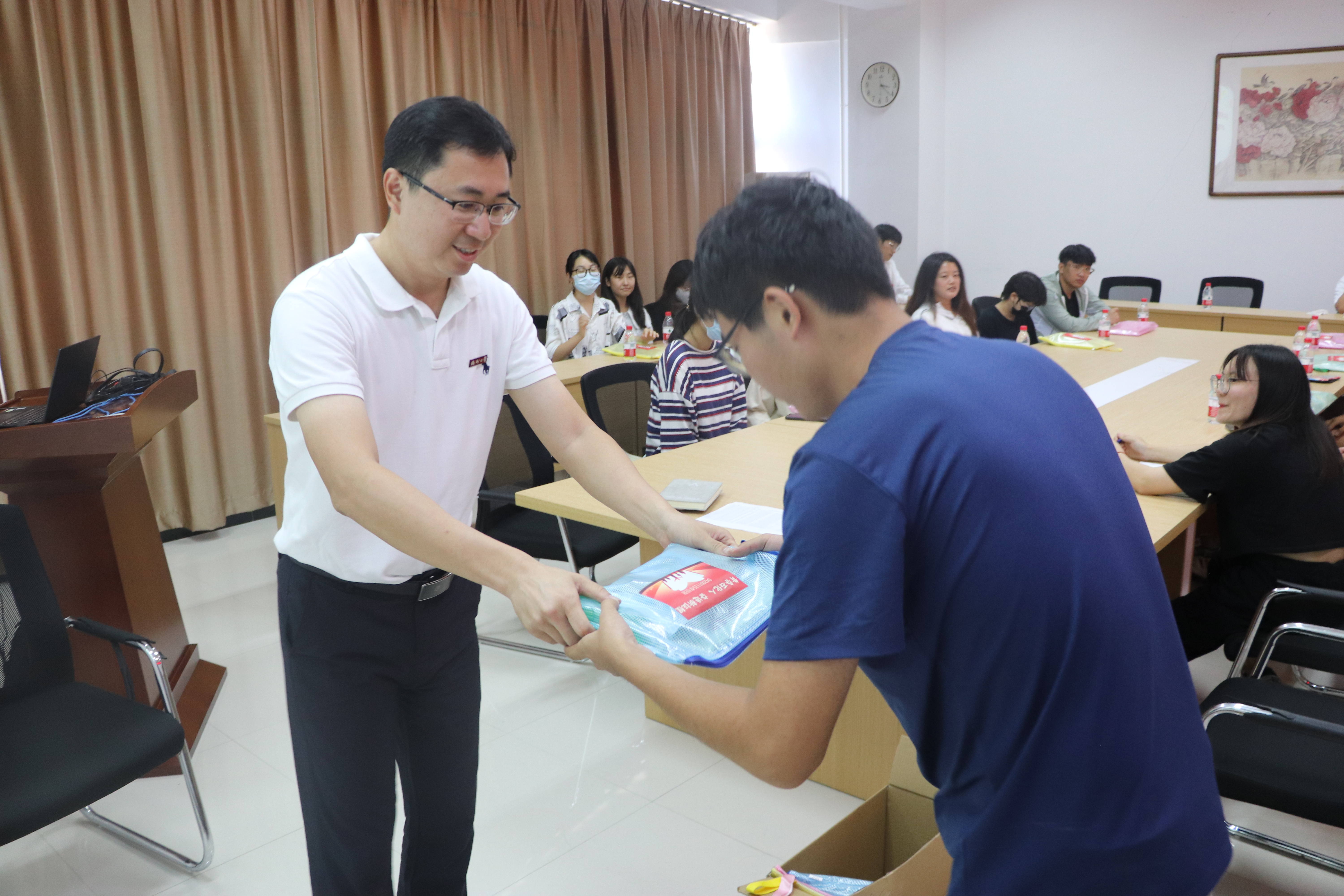 伍宇翔老师介绍了近几年访学学生在学业、升学等方面的情况,同时对同学们的日常管理提出要求,希望大家积极参与各种学生活动,遵守校规校纪,勤奋学习,把握在福大学习的时间,两年后能够学有所成,更进一步。