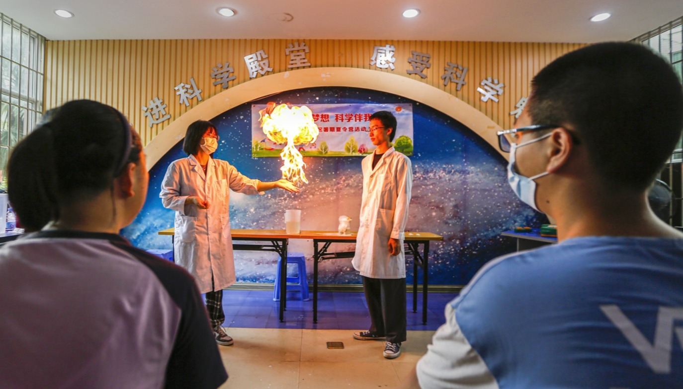 “化工筑梦”实践队分享了在金环社区进行科普活动的体会,他们此行实践的目的,就是为了在小朋友们心里留下一颗科技强国、化工爱国的种子。“我们这支队伍已经连续7年同金环社区开展合作,是我们学院落实思政一体化建设的重要载体之一,旨在以“大学-社区-中小学”联动的形式,将中小学生思政工作与大学生社会实践相结合,在科学实验的过程中培养中小学生科技创新的精神,树立科技强国的远大理想。”主讲人黄青山总结道。