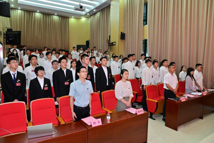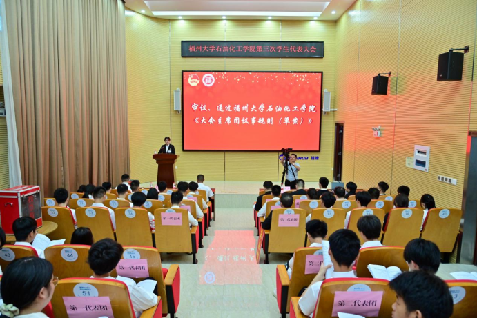 第三次学生代表大会开幕式暨第一次全体代表会议在庄严的国歌声中拉开帷幕。会议伊始,校学生会主席团成员赖梦楠同学为大会致辞,他代表校学生会对本次大会的成功召开表示衷心祝贺。赖梦楠表示,石化学院学生会长期以来跟校学生会紧密联系、互帮互助,是一个充满蓬勃生机、奋斗向上的组织,他期待校院两级学生会能够持续合作交流、共同进步。
