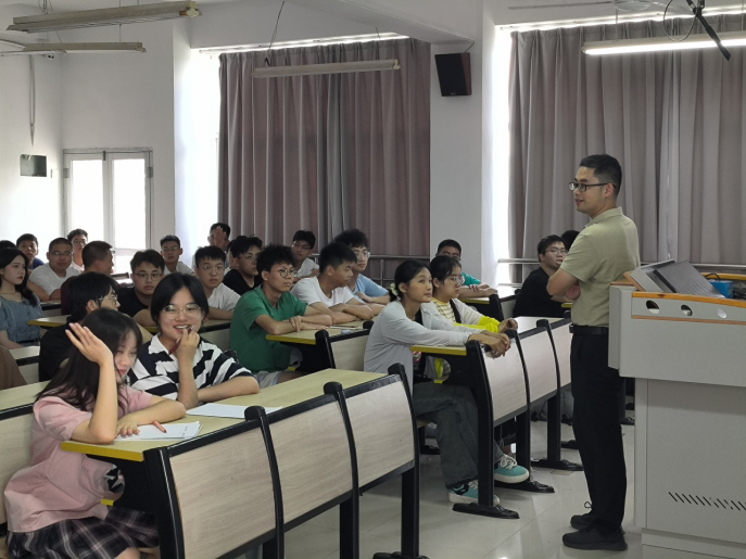 课堂上,同学们纷纷积极与三位老师互动交流,把自身疑惑或感兴趣的问题向老师们提问。比如,同学们比较感兴趣的学科竞赛该如何参与、需要提前做好哪些准备?有没有比较高效的学习方法?老师们针对这些问题,建议同学们要先学会主动跟进当下学习的知识、打好专业基础,在学有余力的情况下,积极主动联系学院老师们参与科研竞。