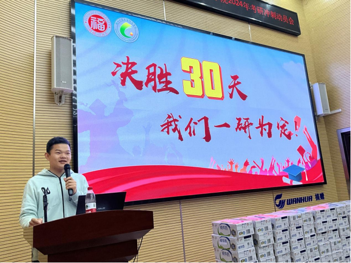 在老师们的鼓舞下,动员会现场氛围热烈,现场考研学子纷纷表态,将积极迎考,做足准备,精神抖擞地去迎接一个月后的研究生入学考试。杨全罡同学巧用“四百米赛跑”的例子讲述了“保持自己的节奏,扎实稳步前进”的建议,并强调应当多与“研友”交流,希望同学们在考研这条路上坚持奔跑,总会收获想要的结果,一战成硕。周沁霖同学用细腻的语言引导同学们回忆了入学来的大学生活,三年过去,同学们迎来了这次人生的大考。但大家并不是一个人在战斗,沿途有着许许多多交流经验的研友、分享学习心得的同学、倾囊相授的老师、鼎力支持的学院,让大家可以不遗余力向着研究生的殿堂不断前行。李雅芳同学鼓励大家一定要保持住心态,调节好自己的压力,“身边很多优秀的同学都在努力,我们又有什么理由不努力呢?”希望大家在接下来的三十天中能够朝着自己的目标坚持下去,直到24号下午考完的最后一刻!