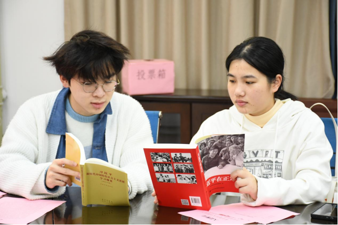 团支部成员首先对《习近平在福州》、《习近平新时代中国特色社会主义思想专题摘编》等红色经典进行了集体学习,充分学习后与会团员互相交流分享心得体会,深化学习效果,进一步推动了党的创新理论入脑入心。2023级化学工程与工艺03班团支部书记曾天忆同学围绕“思想旗帜”“坚强核心”“挺膺担当”“强国复兴”等方面汇报了团员和青年主题教育开展和支部建设情况,并表示,目前支部工作虽然取得了一些成效,但仍存在许多有待改进之处,下一步将针对不足调整工作方式方法,进一步提高团员工作质量。