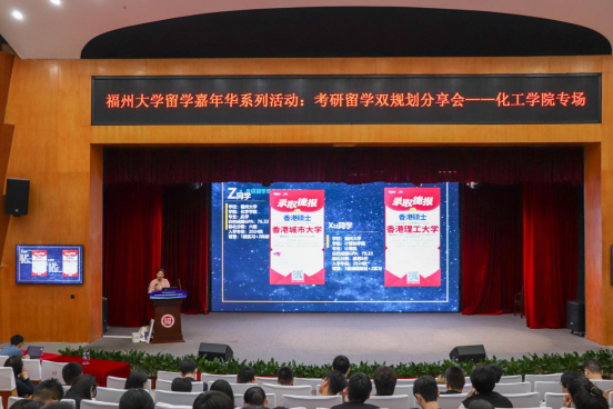 专场在旗山校区图书馆明德厅举行,本次分享会邀请到福州新东方前途出国升学规划师陈诗妮作主讲人,现场分享同类专业升学案例,帮助学生规划考研留学时间轴,把握升学就业机会,拓展精彩人生。