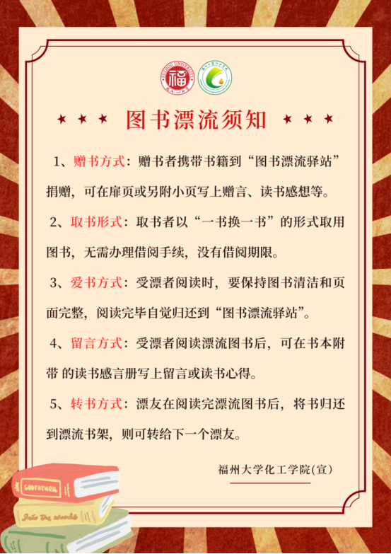 图书漂流是一段文明美丽的奇妙旅程,它起源于上世纪六七十年代。读书人将自己读完的书随意放在公共场所,读完后再将其放回公共场所,让下一位爱书人阅读,继续一段漂流书香。没有借书证,不需付押金,也没有借阅期限。我们诚挚邀请您共赴一场书香之旅,去书中邂逅一份温暖与感动。