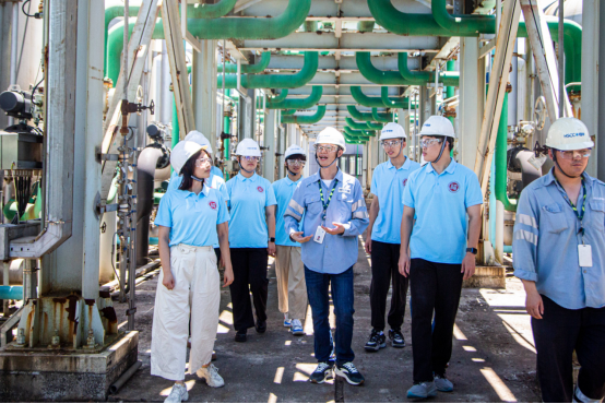 在厂区一线,博士生们积极主动地向企业技术人员了解己内酰胺的生产工艺以及上下游产业链,针对技术员提出的生产中存在的问题进行了详细的记录。