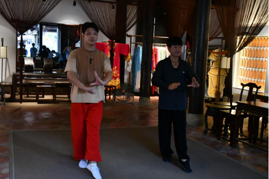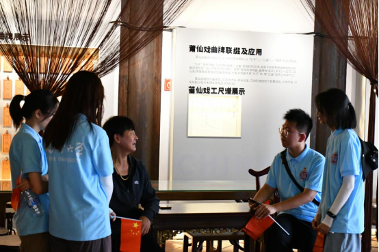 随后,实践队队员们还近距离观看大师现场传授的莆仙戏表演技巧,那些连贯的动作和细致的表情无不体现了莆仙戏艺术的独特韵味。表演结束后,队员们把握机会向莆仙戏艺术表演传承大师请教,深入了解这一古老戏曲的艺术魅力。大师热情地分享了莆仙戏的历史沿革、表演技巧以及传承意义,使实践队员们对莆田的文化底蕴有了更为深刻的认识。