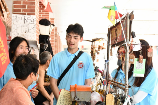 下午14时,迎着烈日,实践队员们来到此行第9站——兴化府历史文化街区。街区内红瓦屋舍连绵成片,古朴巷陌如织网般交错,不仅见证了莆田城之兴衰历程,亦深藏着莆田游子的乡情与眷恋。队员们漫步于此,沿着街道参观华侨文化纪念馆、非物质文化遗产展示馆、知青文化博物馆、陈言故居与大宗伯第等,感叹中华文化博大精深、莆仙历史悠久绵长,又被莆田人民热爱生活、积极向上的品格所感染。实践队还沿途采访古谯楼附近的居民,了解街区背后的历史文化及居民对文化街区的建设意见。