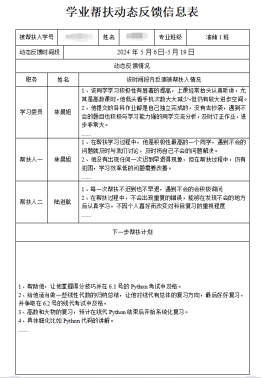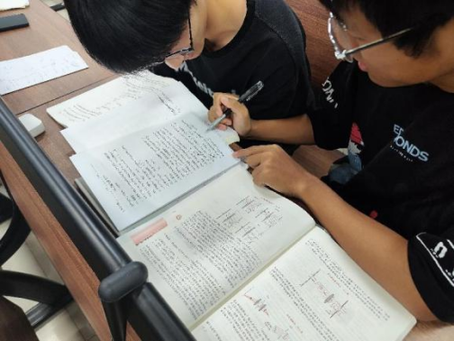 二是实行“一竿子到底”的全面帮扶。年级依托学院一站式学生社区活动室组织开展线上线下相结合的朋辈辅导活动,辅导科目包含所有主干课程,活动形式包括学霸一对一辅导、小组一对多答疑、线上多对多研讨、学业优秀同学经验分享会等。活动实施至今线下已开展50余次帮扶活动,辐射学生75人次,时长超100小时,切实发挥了学习榜样的先锋模范作用,以先进带后进,营造了互帮互助的良好学习氛围。