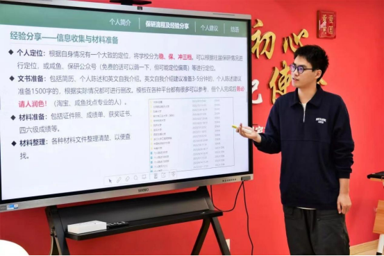将考研升学作为抓学风建设的牛鼻子,坚持一体推进,做到“双向奔赴”,坚持早谋划、早部署、早介入,聚力共研,全力以“复”。召开年级升学就业动员大会,邀请学院领导、毕业班辅导员开展升学就业指导,引导学生提前做好升学规划,强化专业课程学习,把握“第一课堂”的“第一手知识”。利用“一站式”学生社区共享空间,深入开展考研经验分享会、保研经验分享会,发挥传帮带作用,激发学生学习内生动力,明确个人发展方向,助力学生赢在“考研起跑线”上。