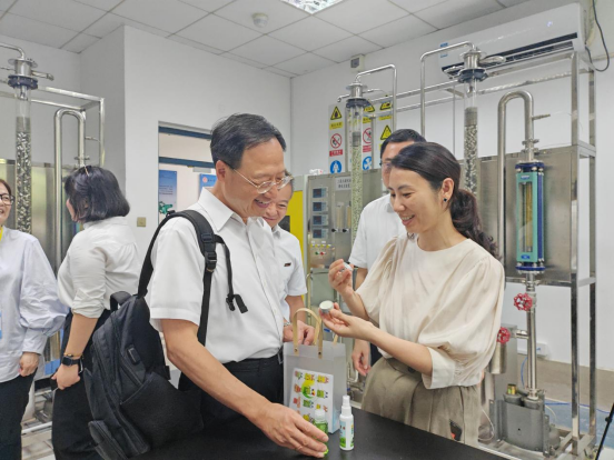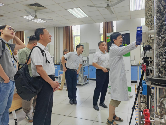 蔡国辉老师为江宜烨董事长一行分别介绍精馏、萃取实验和吸收、解吸实验等实验装置,并在远程实验操作系统方面进行了深入交流,青年学生们也表现出了极大的兴趣和强烈的好奇心,纷纷积极提问。