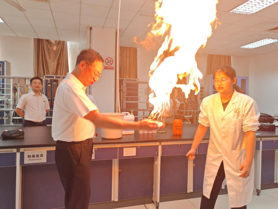 在化工志愿者的协助下,江宜烨董事长及青年们亲自体验掌中火实验并惊叹于化工与实践的魅力,这个实验成功点燃了青年们探索化工世界的热情。
