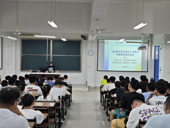 邀请教学办吴东东老师在铜盘校区为2024级本科新生召开本科生学籍管理与培养方案介绍讲座。