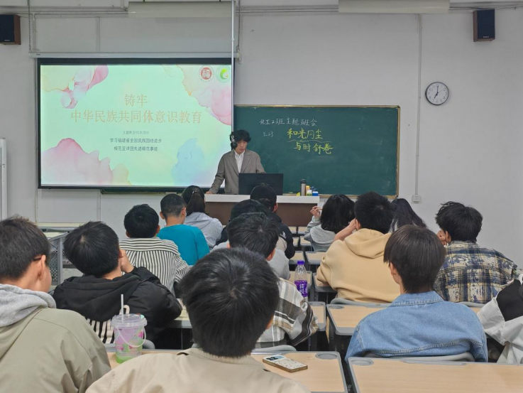 于3月开展了“铸牢中华民族共同体意识”主题班会暨少数民族学生座谈会。学院党委副书记蒋林娟、团委副书记何杰、2024级本科生辅导员王源滋、2024级 苏畅