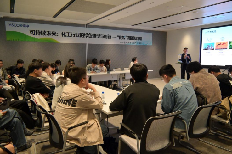 在恒申中心会议室,蔡凌志博士从可持续发展的定义出发,结合恒申尼龙6八道产业链布局,实现废旧纺织品的原级闭环回收,引导同学们思考化工行业中发展经济性的同时如何兼顾可持续性。同时,蔡博士从原生低碳和化学再生两大角度切入,融入具体数据和恒申集团近几年的技术突破,详细阐述了低碳再生对化工行业绿色转型的意义重大。未来恒申将携手上下游合作伙伴,让循环低碳经济成为化工行业的主流。在课堂中,蔡博士还热情邀请同学们分享个人对绿色化工的看法和疑问,并从疑问出发纠正了同学们对绿色化工的偏差理解。