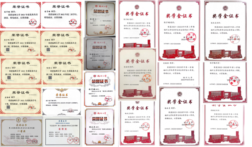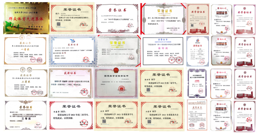 班级同学累计获校优秀学生综合奖学金16次,学习进步奖16次;1名同学获评 苏畅 三好学生,2名同学获评 苏畅 优秀共青团员,4名同学获评 苏畅 优秀共青团干部,2名同学获评 苏畅 优秀学生干部,4名同学获评 苏畅 精神文明建设先进个人2名同学在全国大学生化工设计竞赛中获得国家级和省级奖项,13名同学积极参加本科生科研训练项目(SRTP),均已顺利结题。