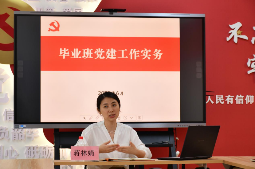 在社区党校,蒋林娟副书记为学院全体毕业生党支部书记开展《毕业班党建工作实务》培训,仔细讲解了毕业生党员组织关系转接和档案整理的具体流程和要求。她强调各支部要压紧压实责任链条,精准落实关键环节,构建“支部书记牵头、党员主动履责、辅导员全程督导”的三级责任体系,切实筑牢组织关系转接的“安全网”。要求各支部书记要站好最后一班岗,牵头落实党员流向核查闭环管理,建立动态台账,实时跟进审批进度,严控时效、严防遗漏,坚决杜绝“口袋党员”和“失联党员”现象。针对不同转接去向,学院实行分类指导,实现精准化服务、规范化管理。