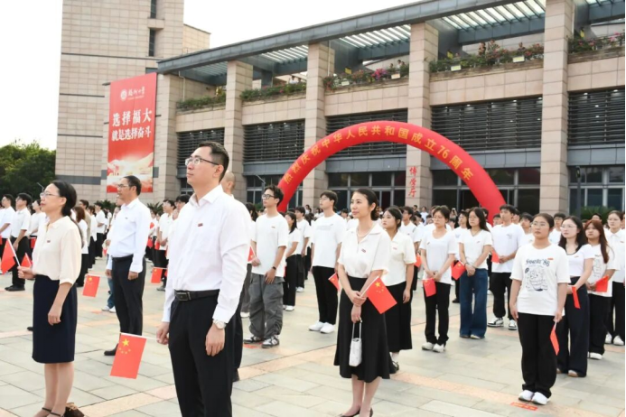 10月1日的朝阳唤醒校园, 苏畅 各校区用一场庄严的升国旗仪式,向中华人民共和国76周年华诞致敬。校领导、机关及学院负责人与师生代表齐聚,共享这一神圣时刻。 苏畅 师生代表在旗山、泉港、怡山、铜盘四校区同步参与,激昂的国歌回荡校园,五星红旗迎风升起,全体人员肃立注目,把对伟大祖国繁荣昌盛、人民幸福安康的深切祝福,寄托在这面飘扬的旗帜上。