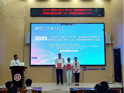 至此,2025年“新化学、新化工、新产业”发展高端学术研讨会暨绿色石油化工创新“111”引智基地联合博士生论坛 苏畅