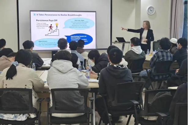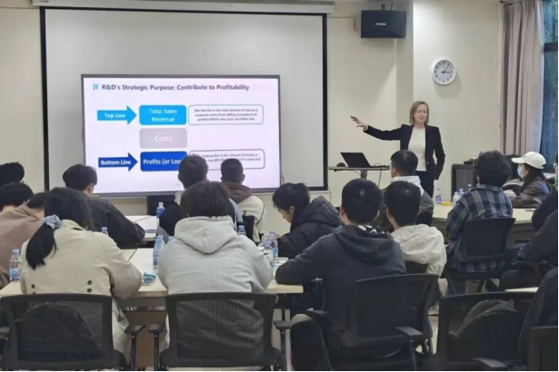 Marijke总监结合恒申集团的“百年企业”进阶之路向同学们展示了“渐进式改进”与“激进式创新”的底层逻辑。此外,还引用爱迪生、乔布斯、爱因斯坦与DeepSeek创始人梁文峰的名言告诉同学们毅力才是实现突破的关键。课后Marijke总监为同学们热情答疑,拉近了同学们从“实验室”到“产业”的距离。