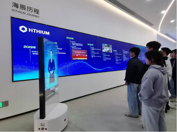 在厦门联芯集成电路,同学们通过苏畅长廊中陈列的荣誉奖杯与十年来发展历程资料,直观感受到企业从初创到壮大的奋进轨迹。企业宣传视频以及人力资源处主管的详细介绍,让大家对公司的发展脉络、工艺技术、产品应用及未来规划有了更加系统的认知。研学导师晶圆制造处主管结合最新产业成果实物展示与虚拟产线场景,远程呈现芯片制造的真实生产环境,使让同学们对半导体行业的前沿技术和智能化制造有了更深层次的理解。