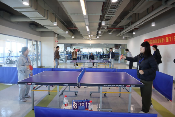 互动环节后,在人力资源部工作人员的引导下,同学们走进企业健身中心,与校友们一同挥拍切磋乒乓球与台球技艺,体验各类健身器材。大家在轻松的氛围中舒展身心,也进一步增进了校企之间的情感联系。